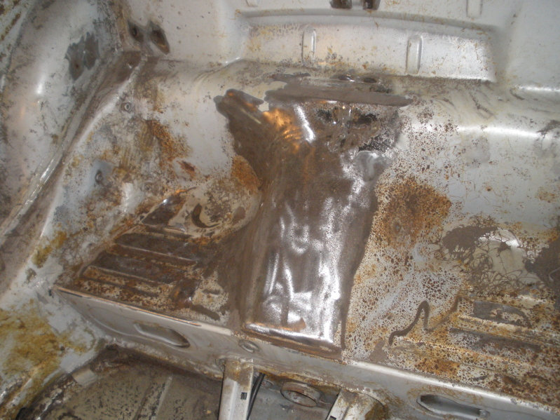 | As it turned out the rust was worse than I thought so I had to sandblast the entire area. In a couple places it had rusted a couple pin hole all the way through. | |||||||||||||||||||||||||||||||||||